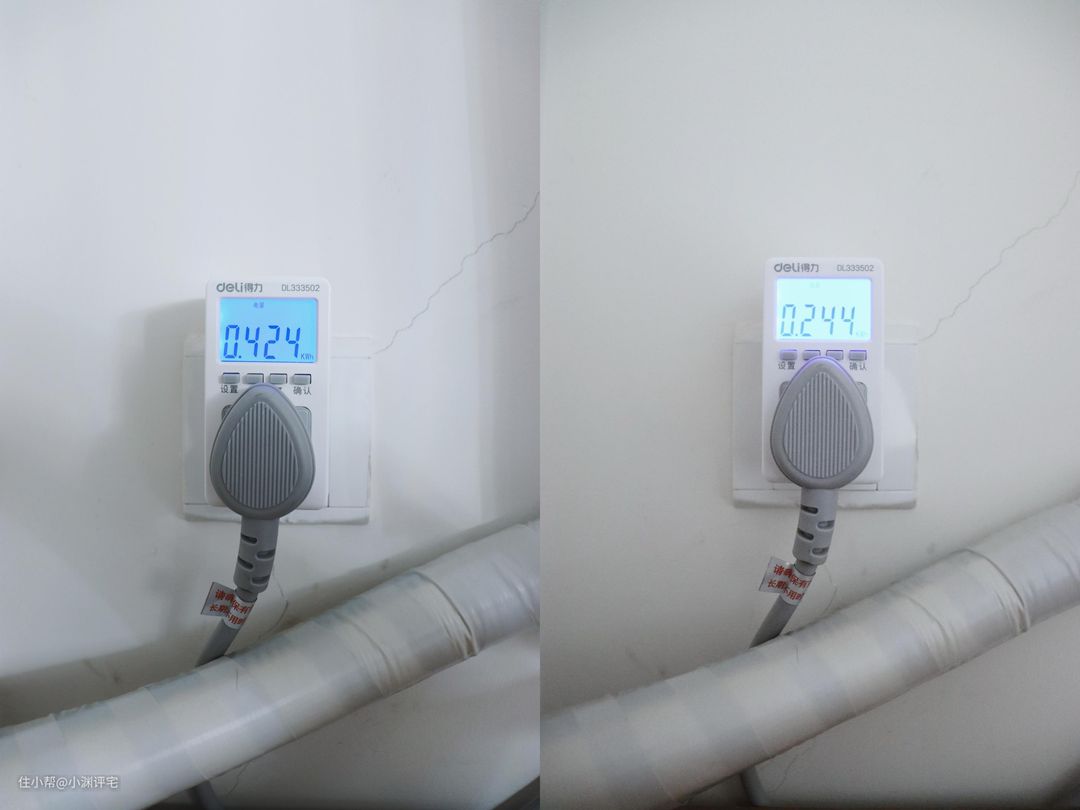左侧是设定26℃运行1小时的结果,耗电量0.424kWh;右侧是设定27℃运行1小时的结果,耗电量是0.244kWh。具体的设定参数如下▽
