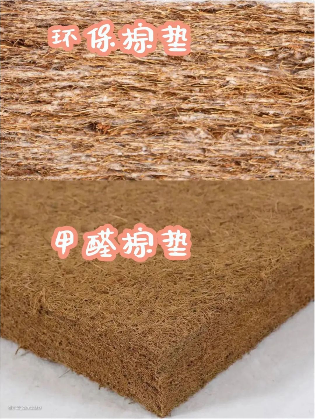 ②如果要买椰棕床垫,工艺上选择高温热压的,会把椰棕脱糖脱脂(脱糖更不容易长虫)最后混合纤维棉热压成型。