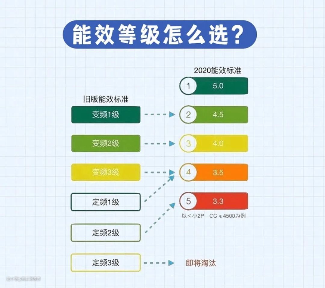 选购时,优先考虑新一级能效的,新三级能效看着似乎便宜点,但通常会减配换热器,电子膨胀阀,风扇等,后果就是空调适应极端环境能力变差,噪音更大,可靠性变低,只是价格略微降低,体验感会差很多。