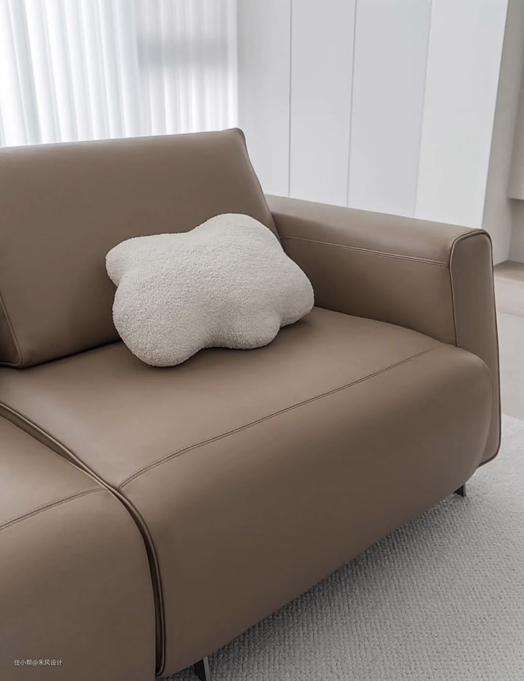 - 沙发选择L型爱马仕橙,真皮材质,坐感更加舒适;