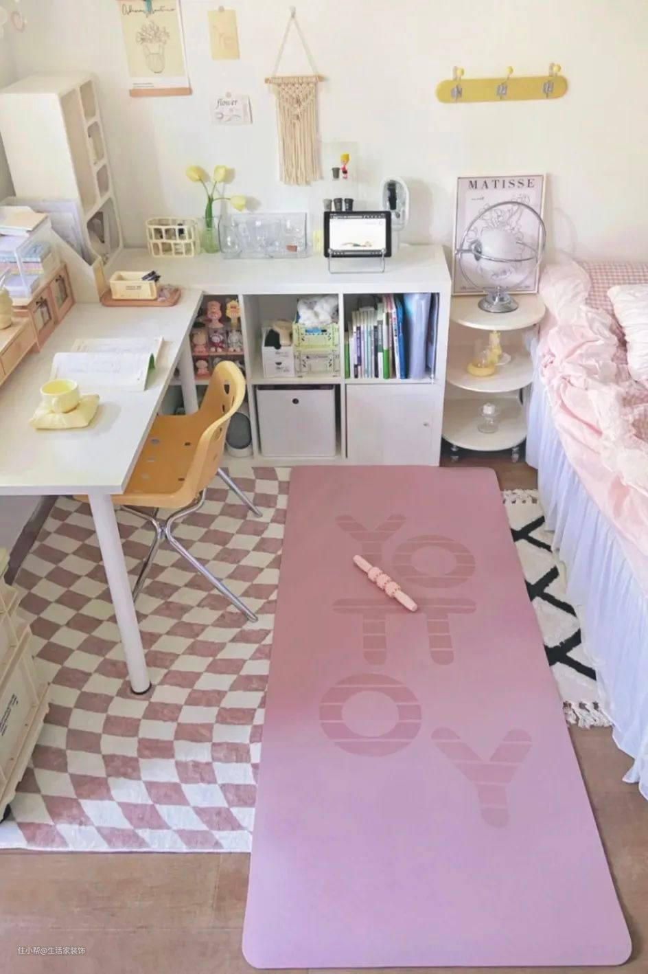瑜伽对于空间要求不大,在卧室或书房的空地上,安安静静地完成即可。瑜伽垫不仅可以保护我们的动作,还可以帮助我们完成大部分的无器械运动。