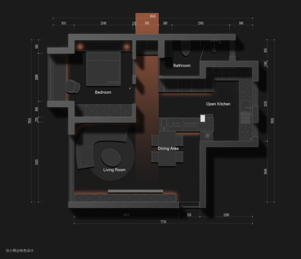 1、南阳台纳入客厅,拓展使用面积。