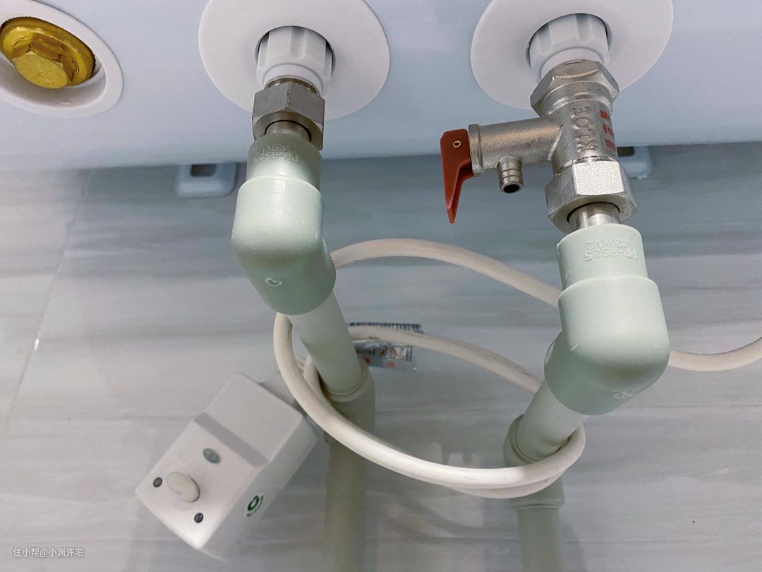 第二是泄压——热水器内部压力过大,可能引起内胆爆炸。所以就在管道处安装了一个泄压阀,它的侧面会有一个小开关,内部压力足够时,会把开关顶起来,向外排水泄压。
