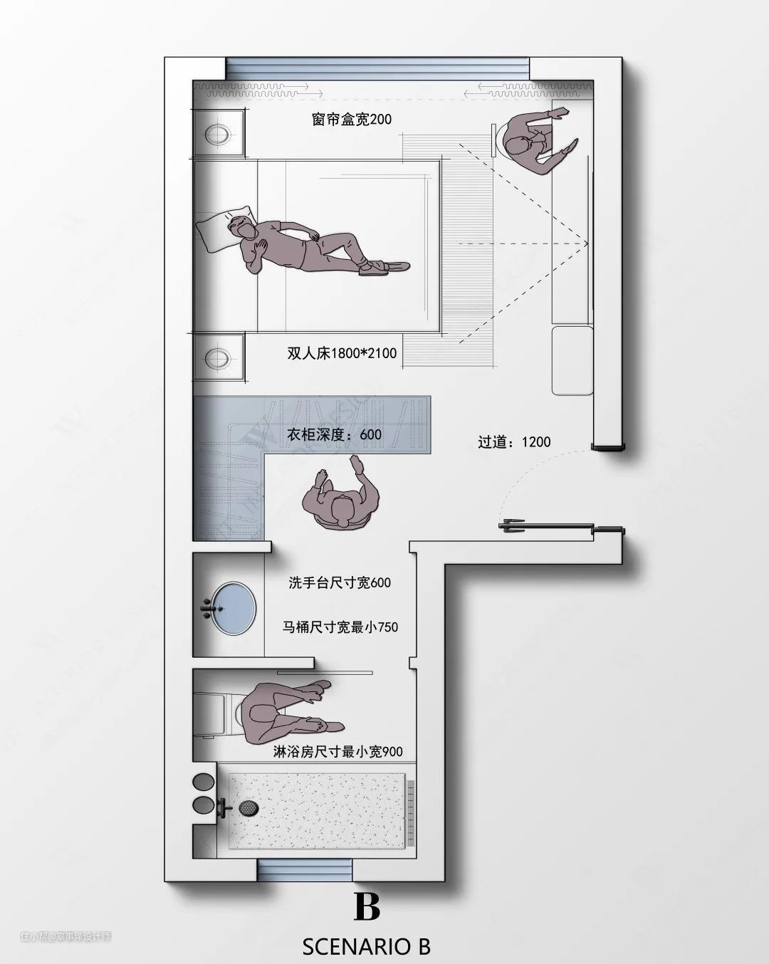 以及解决卧室套房卫生间门对床的问题。