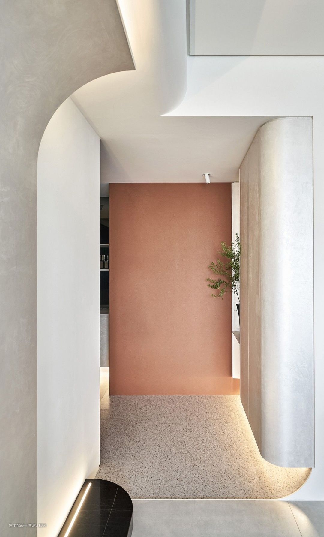 很多传统的墙体造型都是棱角分明且四四方方的,给人一种很容易磕碰的感觉。加入弧形和曲线造型可以在一定程度上弱化这种硬朗和尖锐感,转而圆润与温和,还能起到空间过渡的作用,更有设计感。