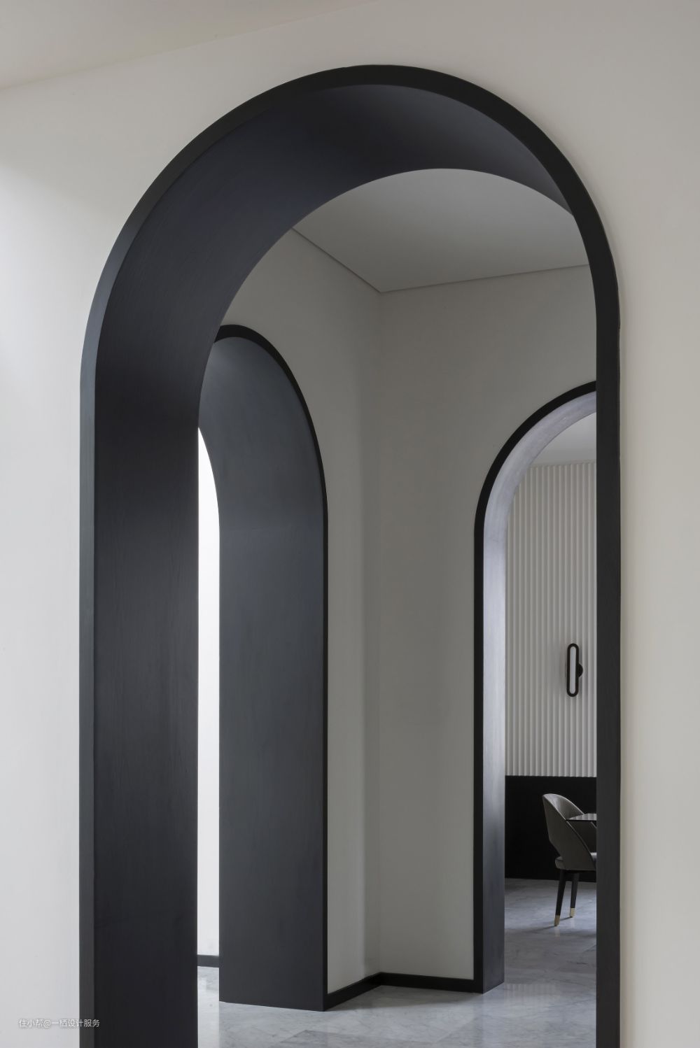 相比于传统的方形门洞,圆弧门洞显得更加柔和,让整个空间更加温馨。