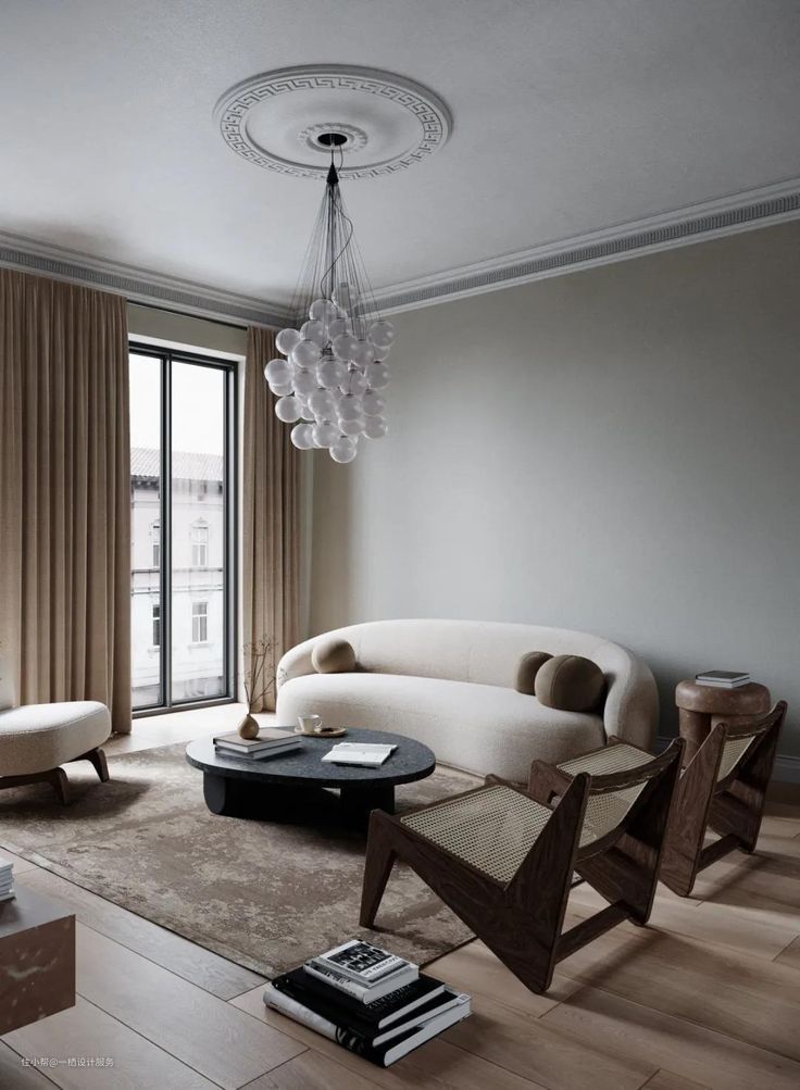 弧线具有流动感,像蜿蜒的河流一样。无论大户型还是小户型,结合了弧形元素,都有一种层高拉高、空间延伸的视觉效果。