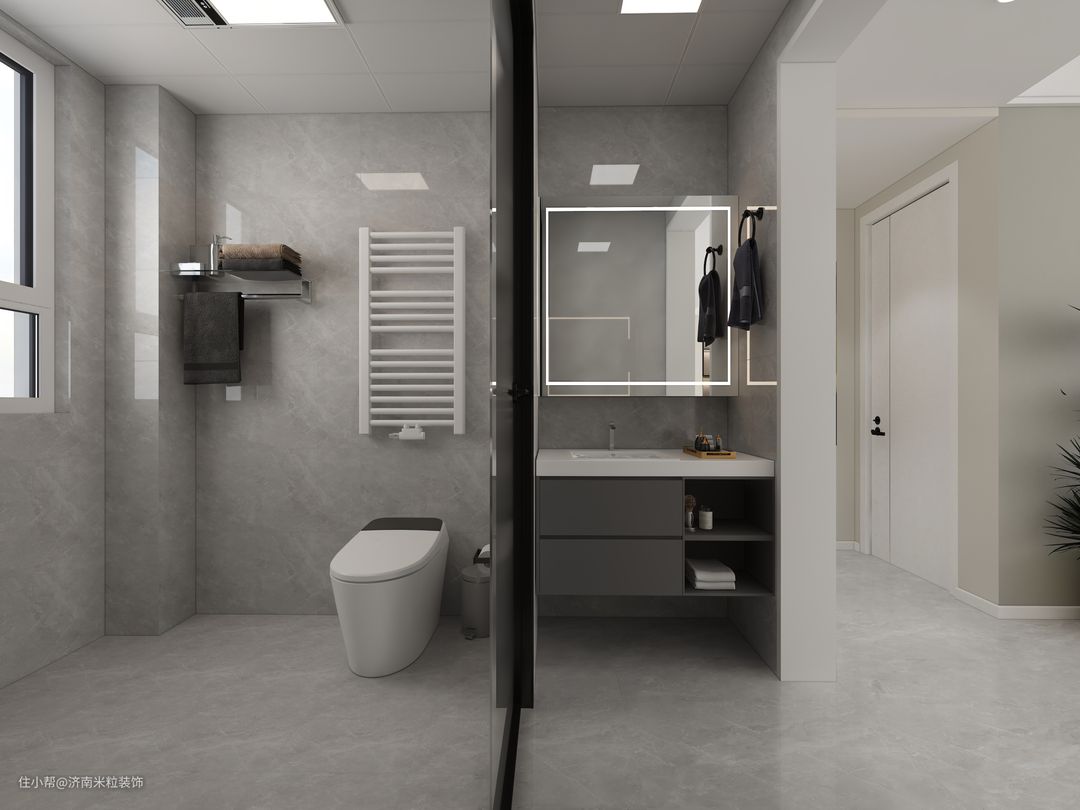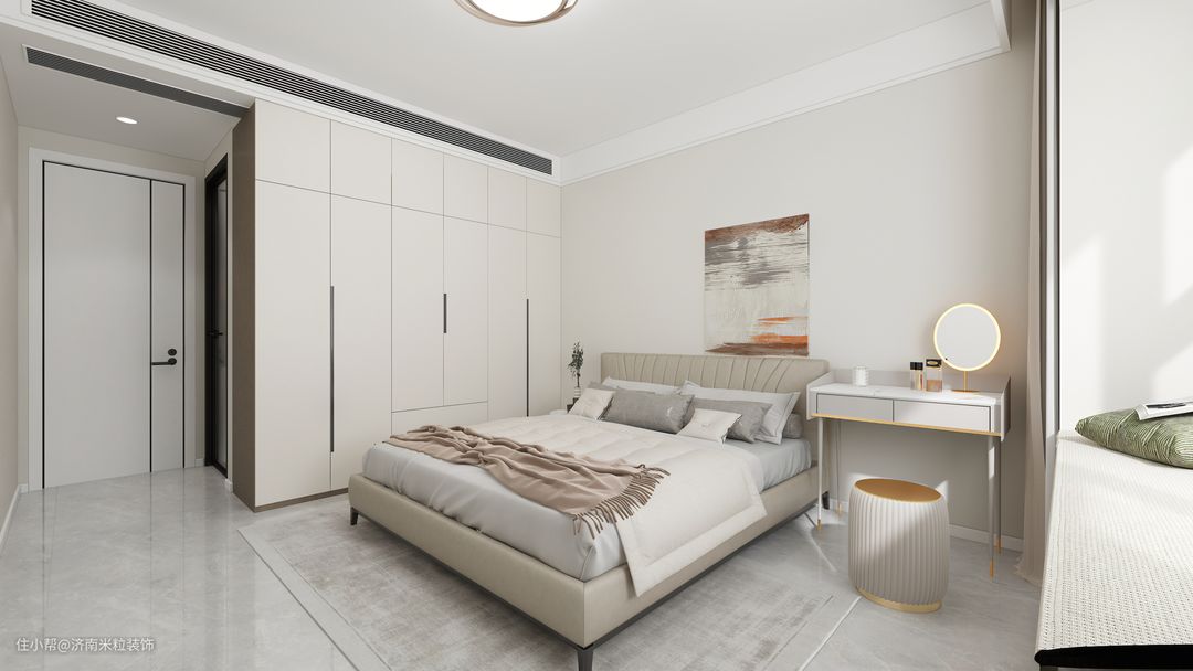 主卧卫生间格局进行了变动,避免了卫生间门冲着床。这样主卧衣柜空间也增加很多。