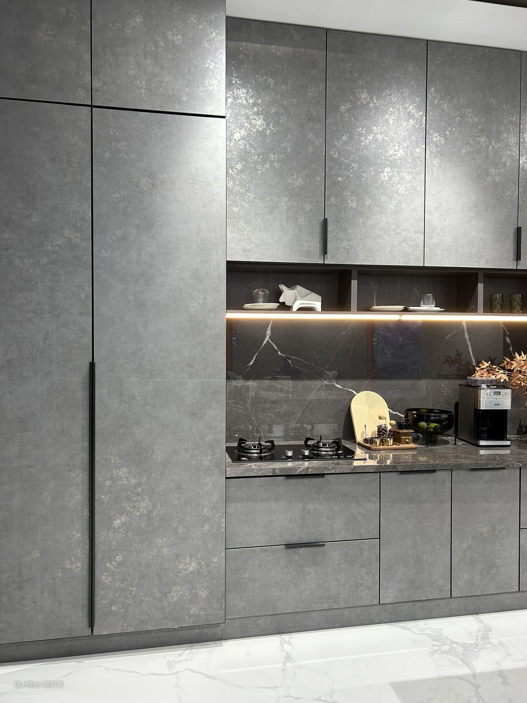 据说只有千万豪宅才能hold住这一套开放式厨房的设计自由伸缩岩板岛台,能屈能伸,应用自如这边呢还有一个超大的收纳功能,再多的锅碗厨具也能轻松装下一打开一个不锈钢的洗手盆慢慢升起 ,洗菜切水果都没问题岛台都做了齐平的款式,坐人也非常方便整个厨房,不仅是岛台,灶台台面,包括所有的柜门都采用了金丝玉玛高端岩板