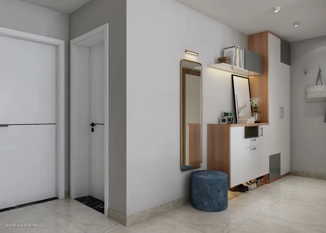 无论墙面是浅色或是深色,白色都可搭得上,白色的踢脚线、门框加室内门是非常美的一套家装搭配,可以无形中将踢脚线隐藏起来,这种搭配特别推荐给层高低、小户型的伙伴。