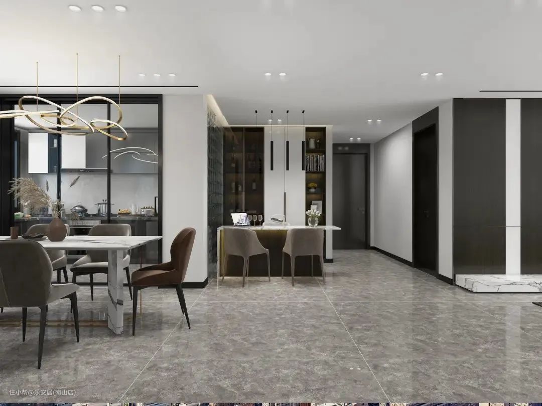 假如墙面与地面颜色都特别深,想要搭配出反差感,白色一样能胜任,一样可以凸显颜色层次,达到分割空间的效果。