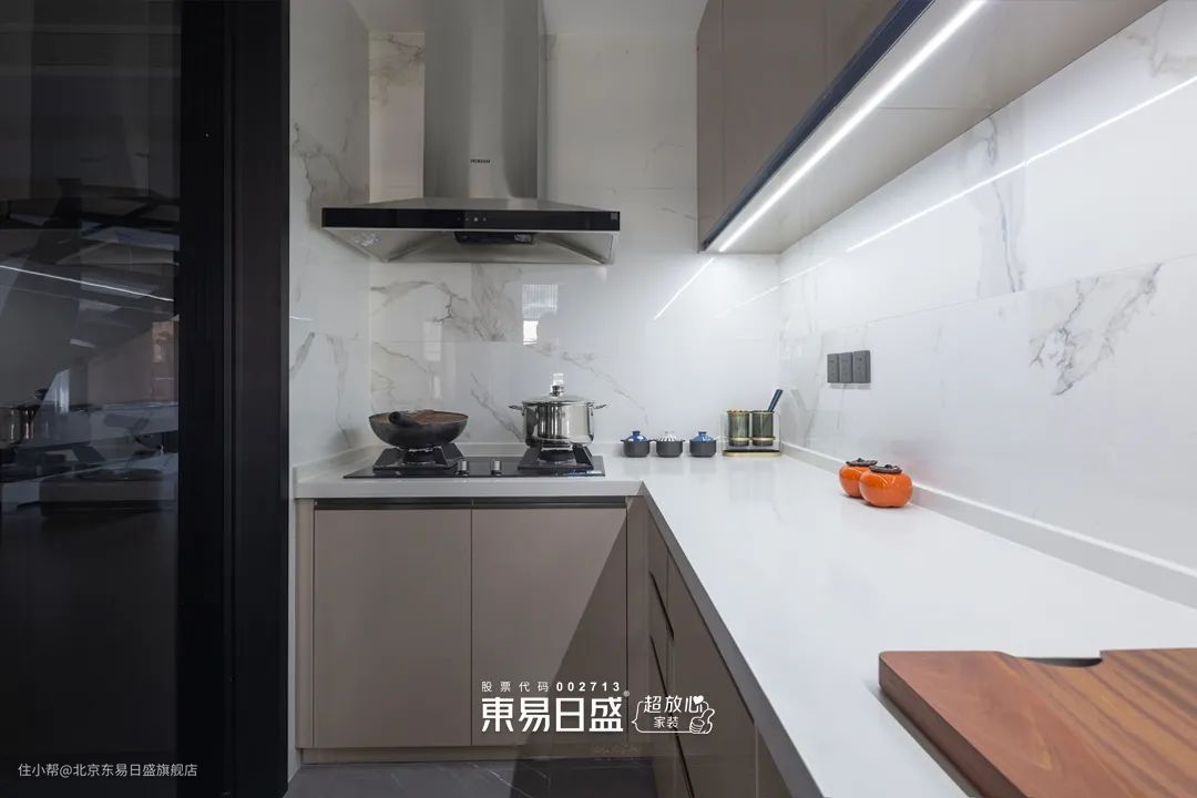 厨房的流畅操作动线,让烹饪变得轻松自在。内嵌式家电让厨房功能实现最大化,使厨房运作有序而不凌乱。