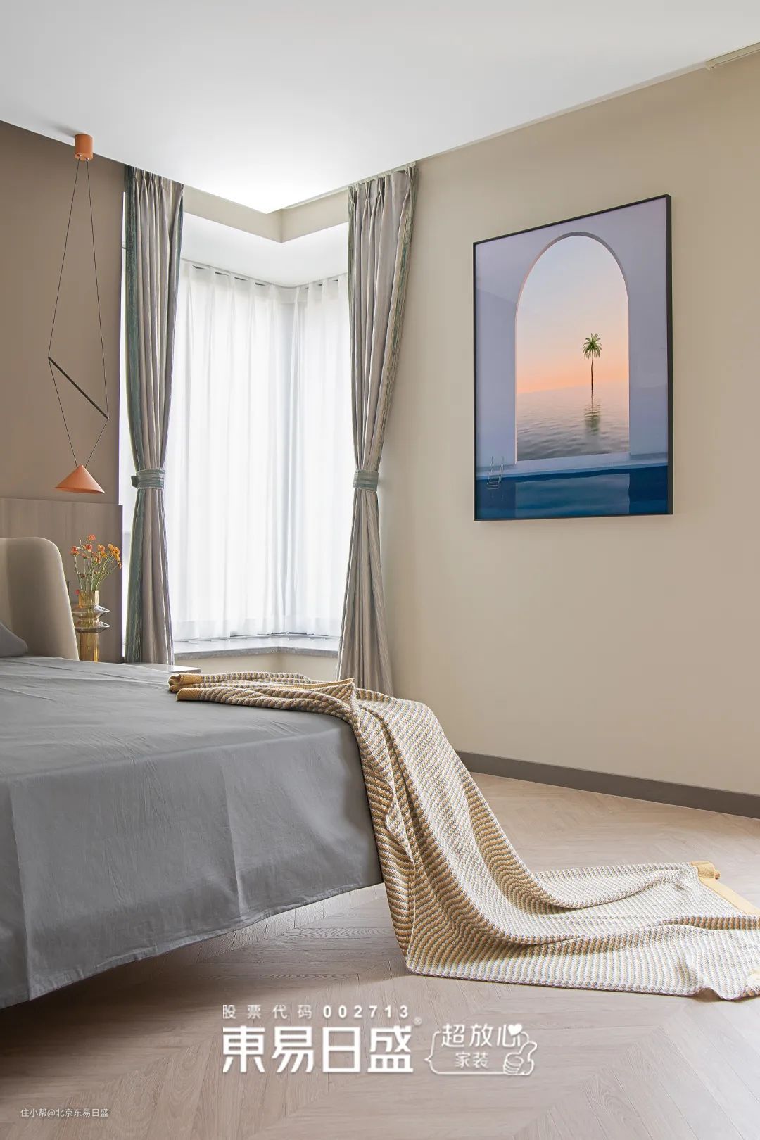 精心搭配的橘色系精致壁灯和海风挂画,让人瞬间放松下来,整个主卧简约却不乏质感。