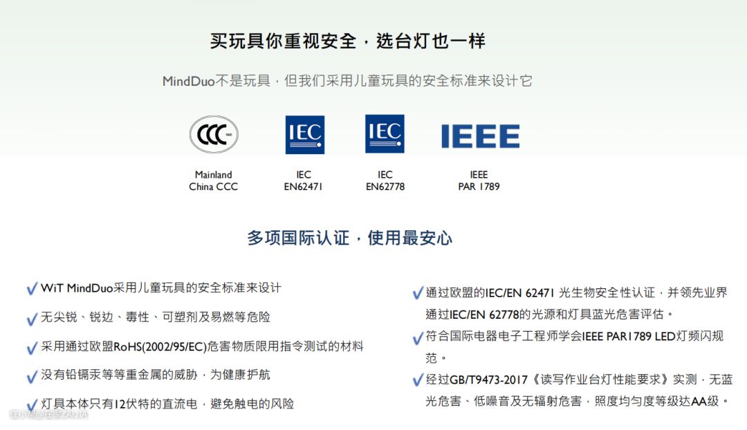 首先,让我们来谈谈它的安全性能。作为宝妈们,我们最关心的就是孩子们的健康和安全。明基MindDuo在照度、显色性和安全性方面都表现出色。