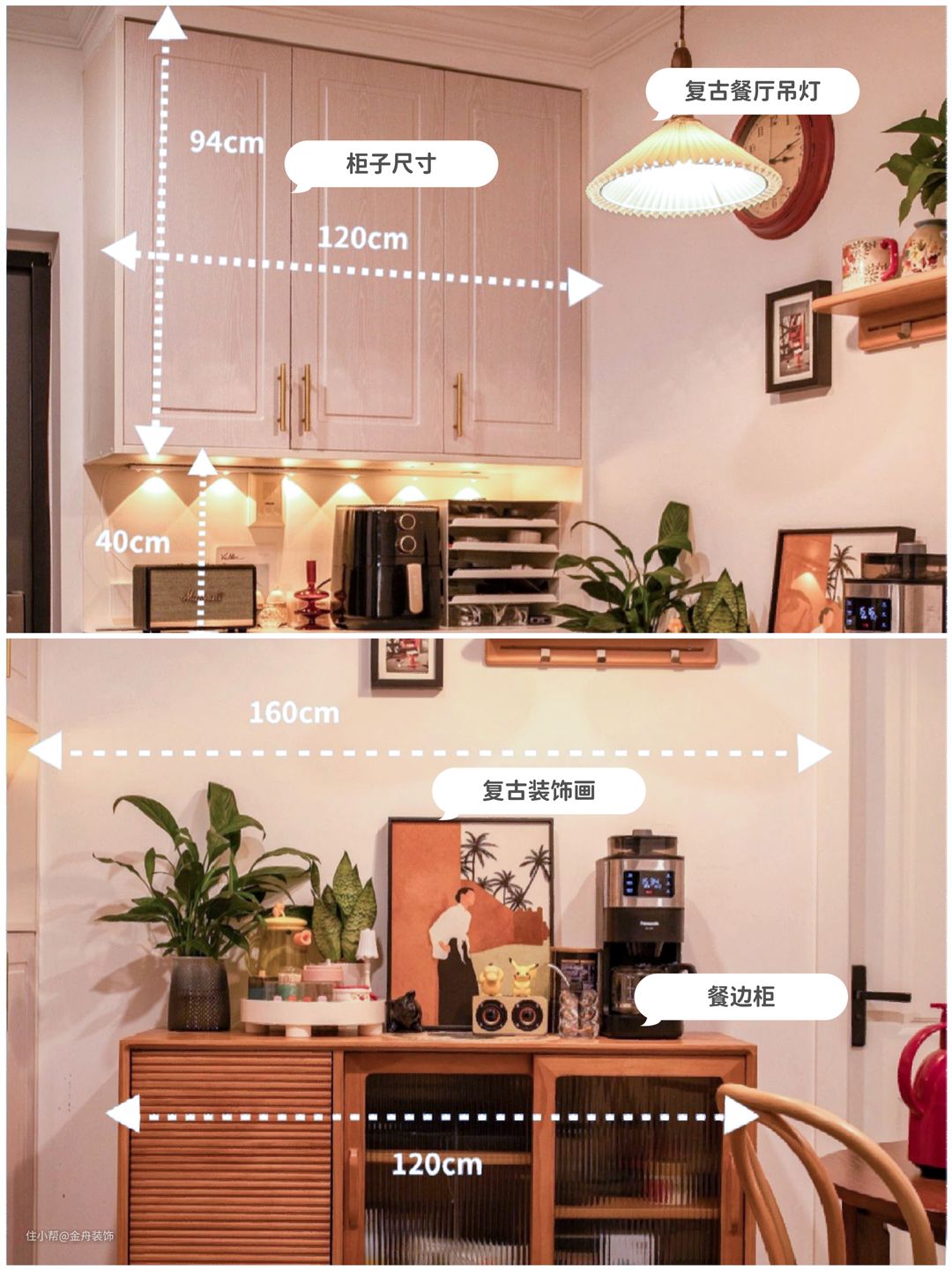 🔺因为尺寸比较小,咖啡机一些小家电放不下,所以如果要定做的话,建议柜子之间的缝隙大于50厘米会比较合适!