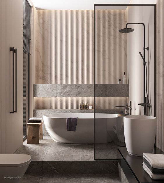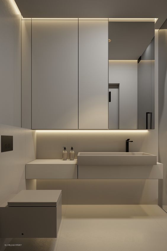 - 考虑选择简约、现代的设计风格的卫生间设备,以与浅色调相匹配。