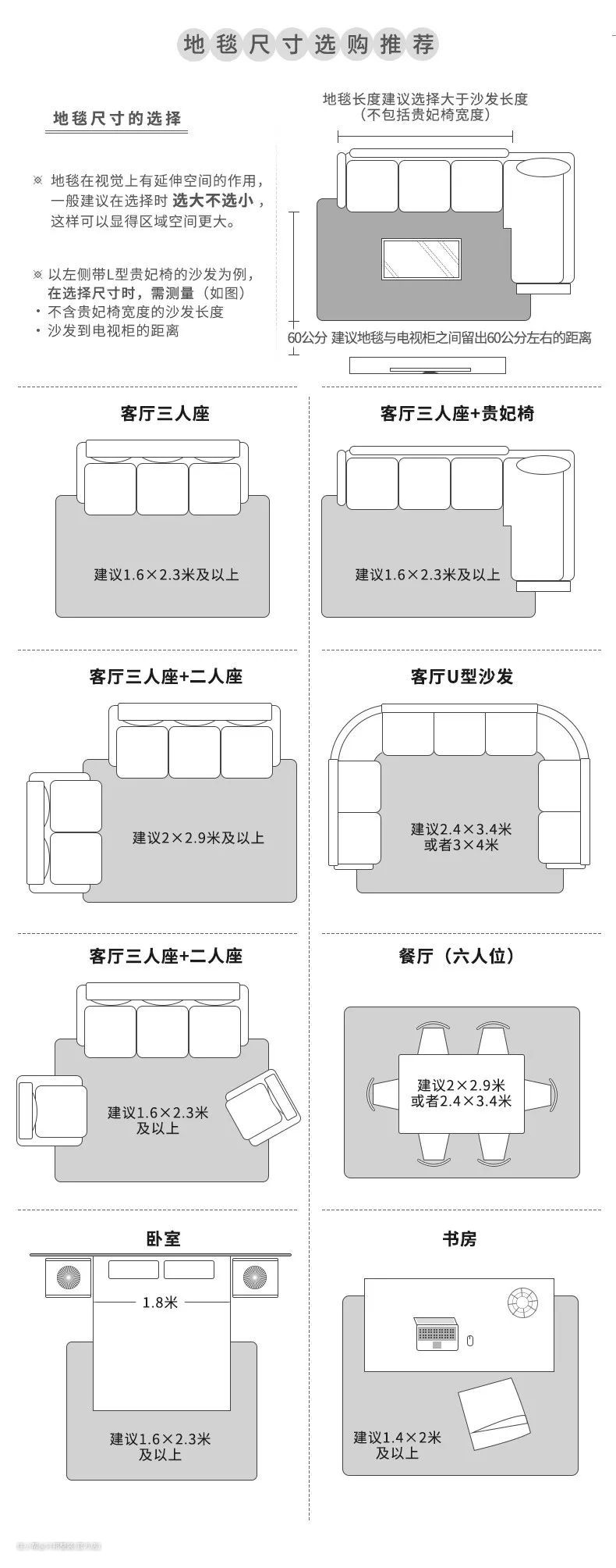 买地毯不知道该如何选择尺寸,一张图就够了