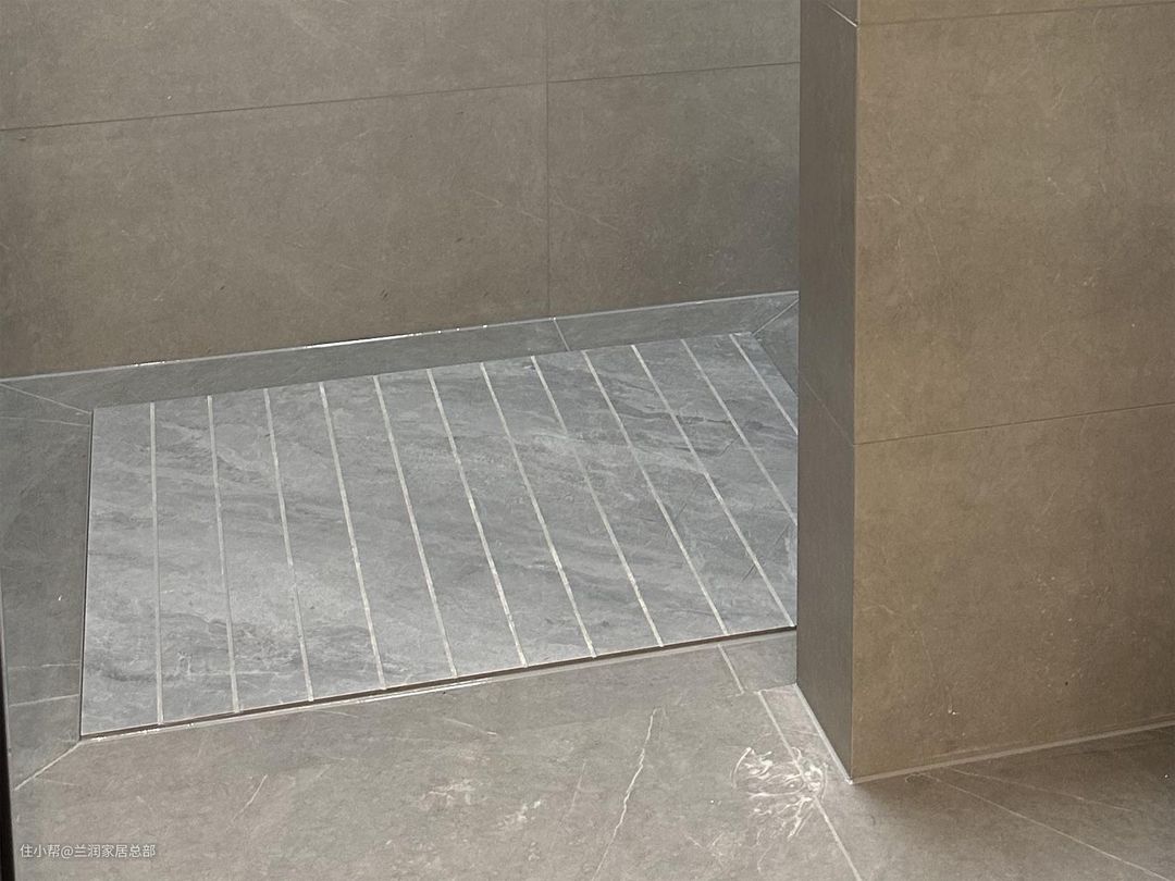 淋浴房地面,建议做拉槽处理,拉槽后的地面可以增加摩擦力,能避免洗澡的时候滑倒。