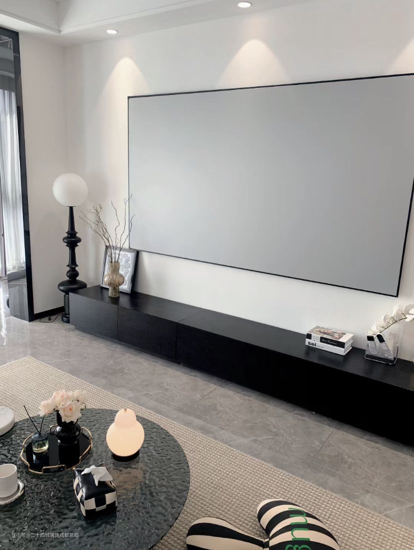灰色的抗光屏幕是投影仪的必备物件,虽然白色的墙面也可以投影上去,但专业幕布的观影感受是要好许多的,电影院的既视感非投影幕布莫属了。