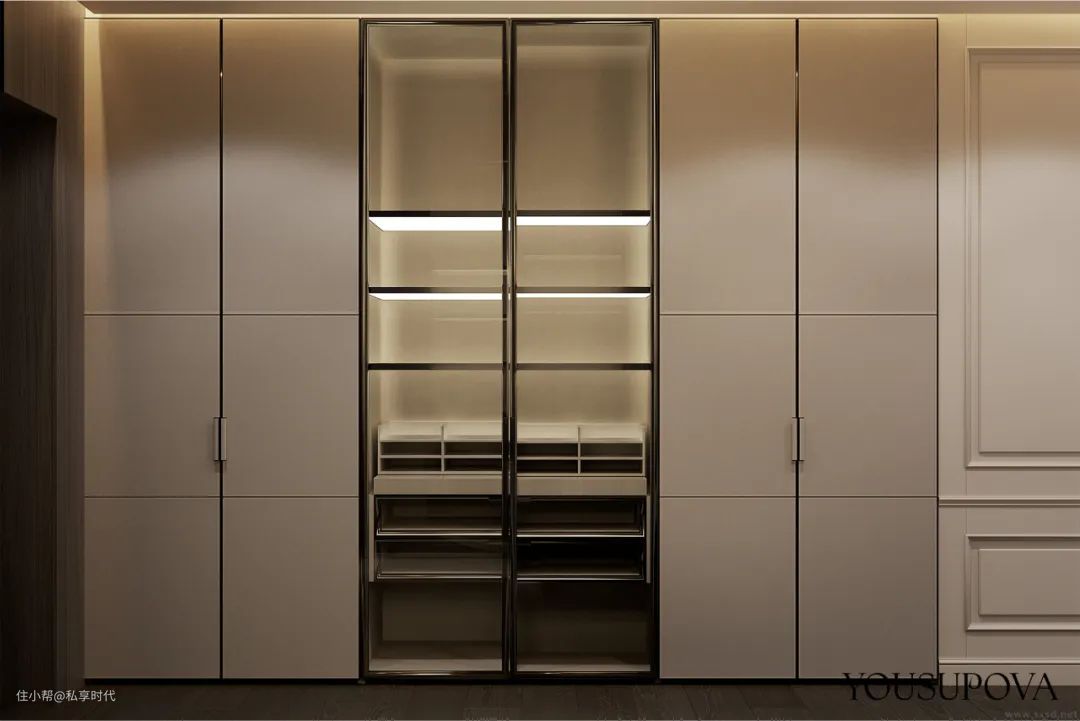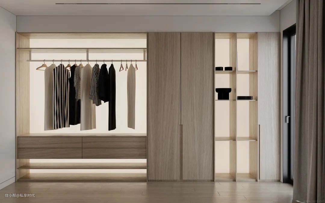 “简而不减”的衣帽间,在注重功能性的同时,呈现极致简约、低调沉稳的个性,从造型再到细节的定制上,实用性强的且兼具时尚精致和高贵奢华。