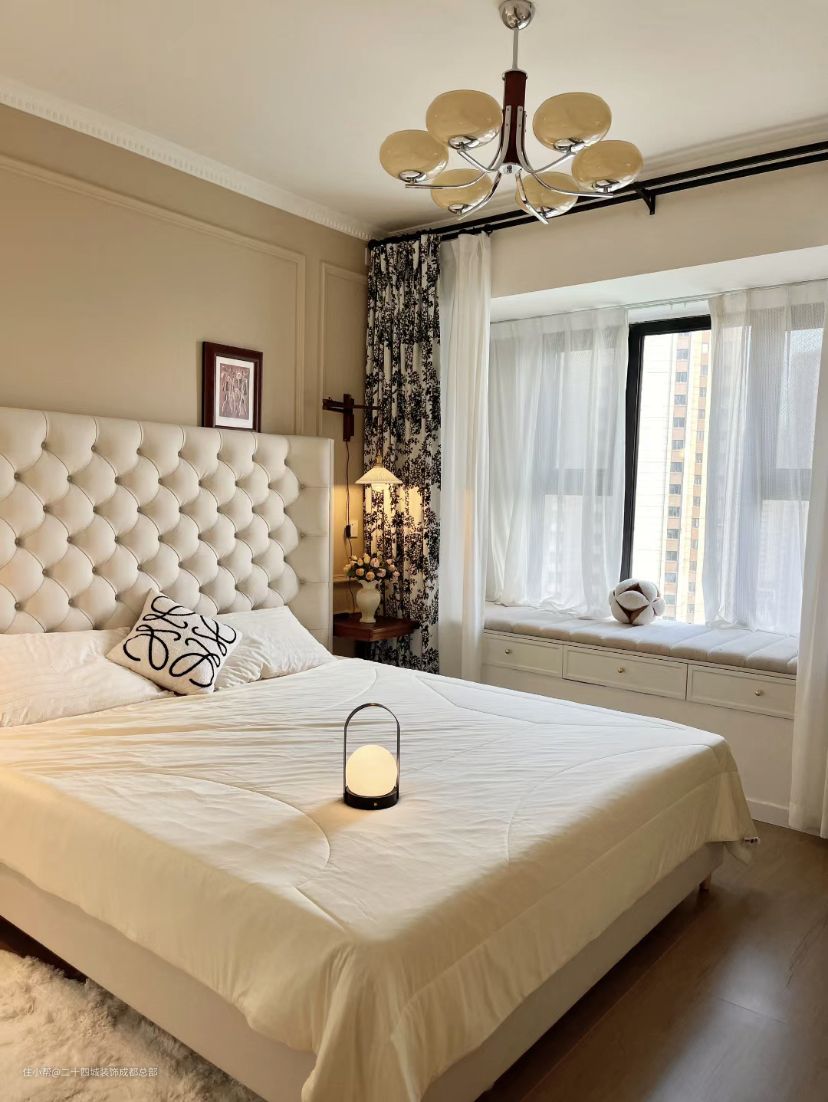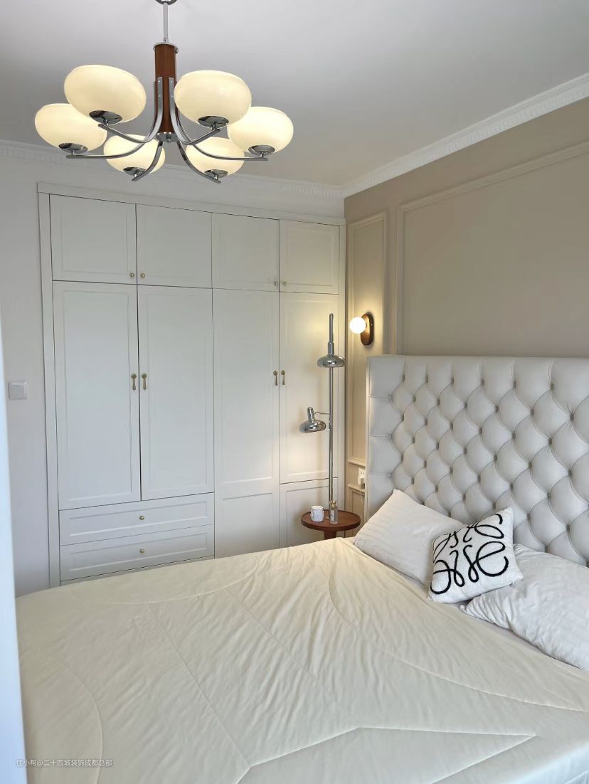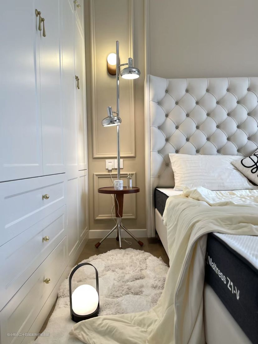 卧室不同于客厅,属于法式奶油风,在颜色搭配上都是以浅色为主,奶白色的家具,搭配浅色的软装,简洁又耐看。每天从温柔的卧室里醒来,舒心自在,每天都是清新的好心情。