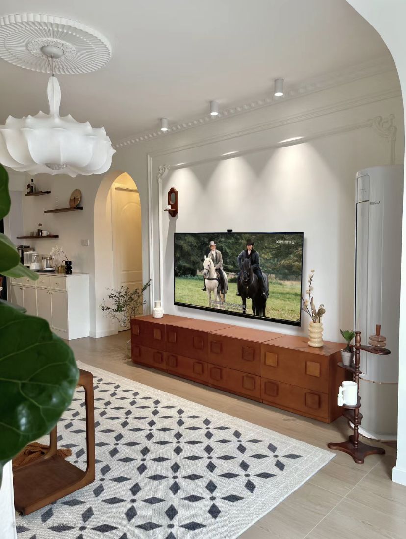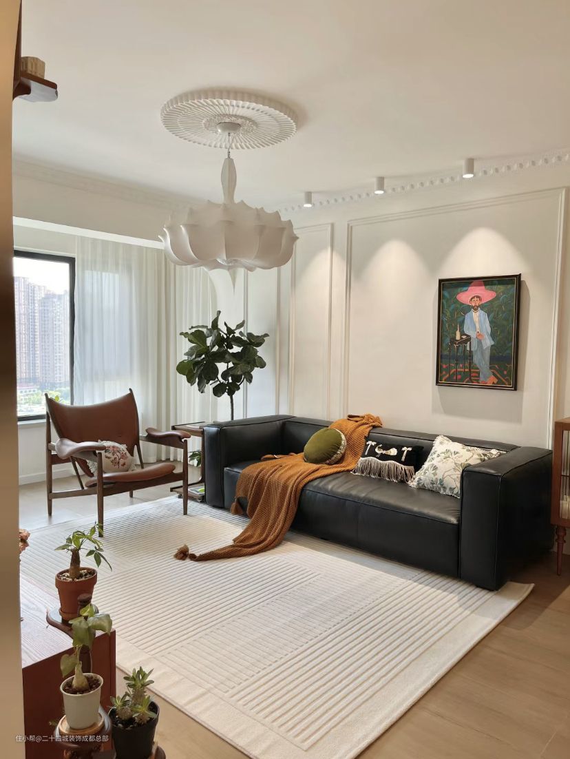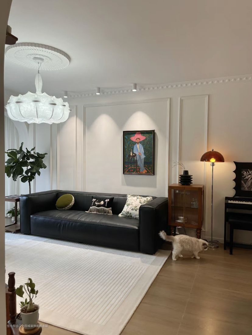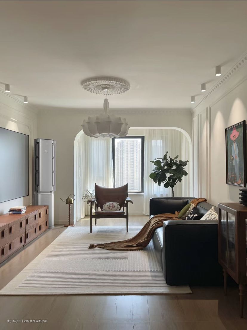 今日精选案例是来自@叁+伍的新家,坐标天津,建筑面积113平,实用面积87平,没有设计师,从硬装到软装都是女主一个人完成。硬装很简单,轻法式风格,全屋通刷乳胶漆,顶部一圈石膏线,背景墙也做了石膏线条。重点都放在了软装上,软装才是一个家的灵魂,软装搭配上最主要的就是配色。这里基本是白色、棕色和黑色,主色是白色,棕色和黑色为辅,搭配出一个放松与舒适的家居环境。