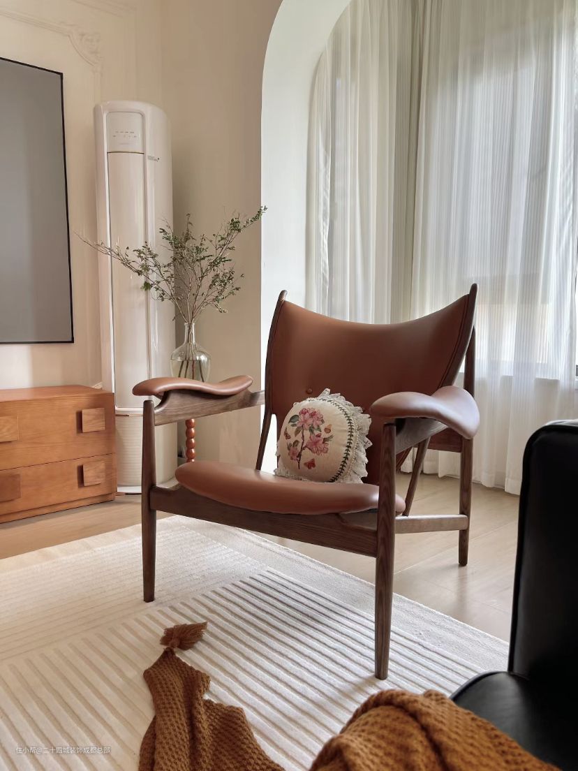 客厅除去一张主沙发外,没有配置其他的单人沙发,倒是配置了一把酋长椅,搬动更方便一些,也特别的舒适。