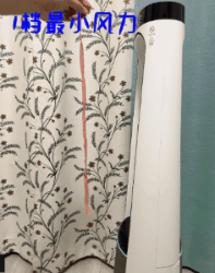 光用仪器测试没有深切的感受,楼主用丝带靠近风口,在1档、6档和12档的不同风力档位下,丝带的飘动幅度各异。