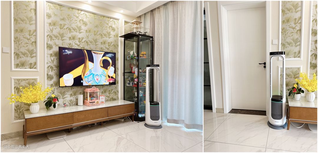 它的三围尺寸为宽度326mm×深度326mm×高度1163mm,占地面积仅约0.1㎡。“窈窕的身形”,让它在客厅、卧室、书房等不同居室中都能“容身”,丝毫不显笨拙累赘,不论客厅休闲观影,还是卧室休憩睡眠,或是书房加班办公,都能完美应对,对面积紧凑的中小户型而言尤为友好。