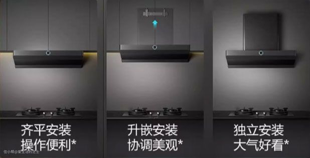 而新欧式就是在原版基础上做了改良,微调尺寸后使得油烟机能够与家里橱柜平齐,看着大方美观又不影响使用,同时还保留了欧式油烟机的强劲动力和低噪音的优点。这也是我选方太F2的其中一个原因,之前老油烟机是新房装修的时候跟橱柜一起定制的,方太F2这款它可以根据家里不同情况选择不同的安装方式:齐平安装、升嵌安装、独立安装。
