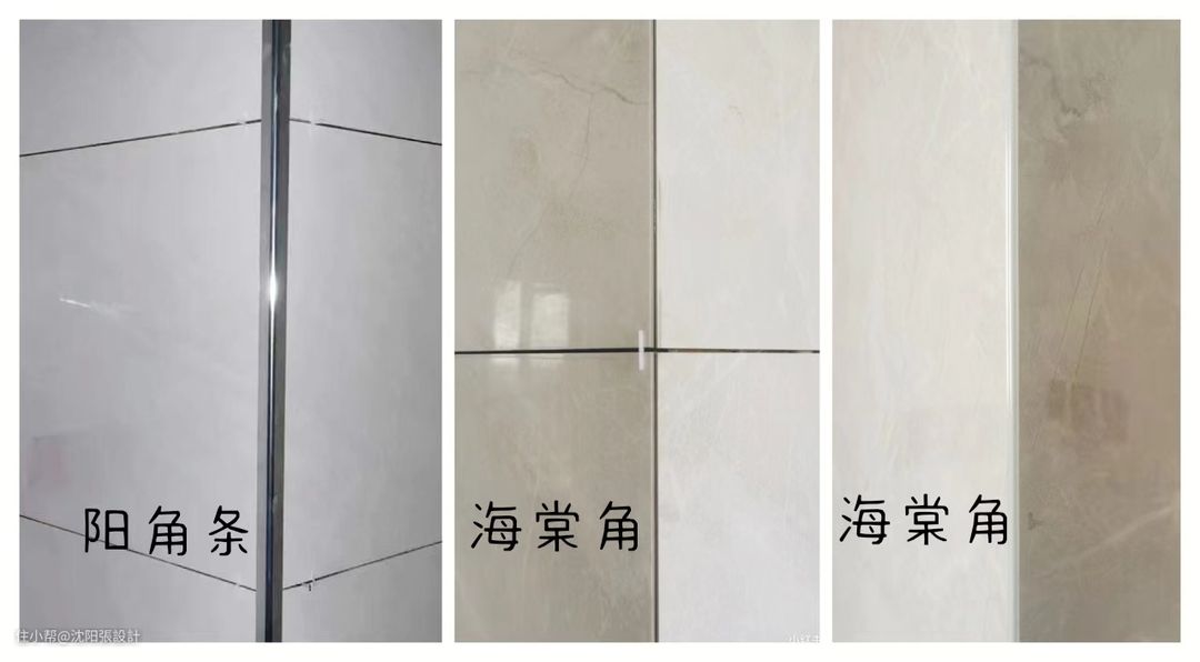 朋友家也在装修,对于阳角条和海棠角的认知总是糊里糊涂。其实简单来说“阳角条”就是用来遮丑的工具,使用阳角条再丑的阳角对缝也都被遮盖了,根本看不到内部施工。但是,阳角条本身就是丑陋的东西,这样无疑是丑上加丑了。要说唯一的好处也就是便于工人施工了吧。而海棠角是指留1-2mm边缘,倒内角,成活美观,边缘直接做美缝施工,一眼看到满墙瓷砖的大气感。
