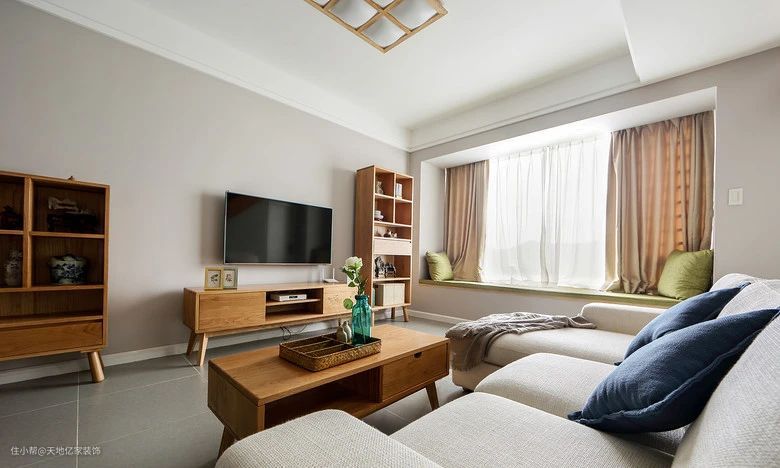 柜子内空间也是可以利用起来的,一些杂物可以用来做储物柜使用,同时在开放柜子里面可以摆放一些装饰品、书籍等等,这样不仅不会让客厅显得那么空旷,还能够提升客厅的艺术品位。