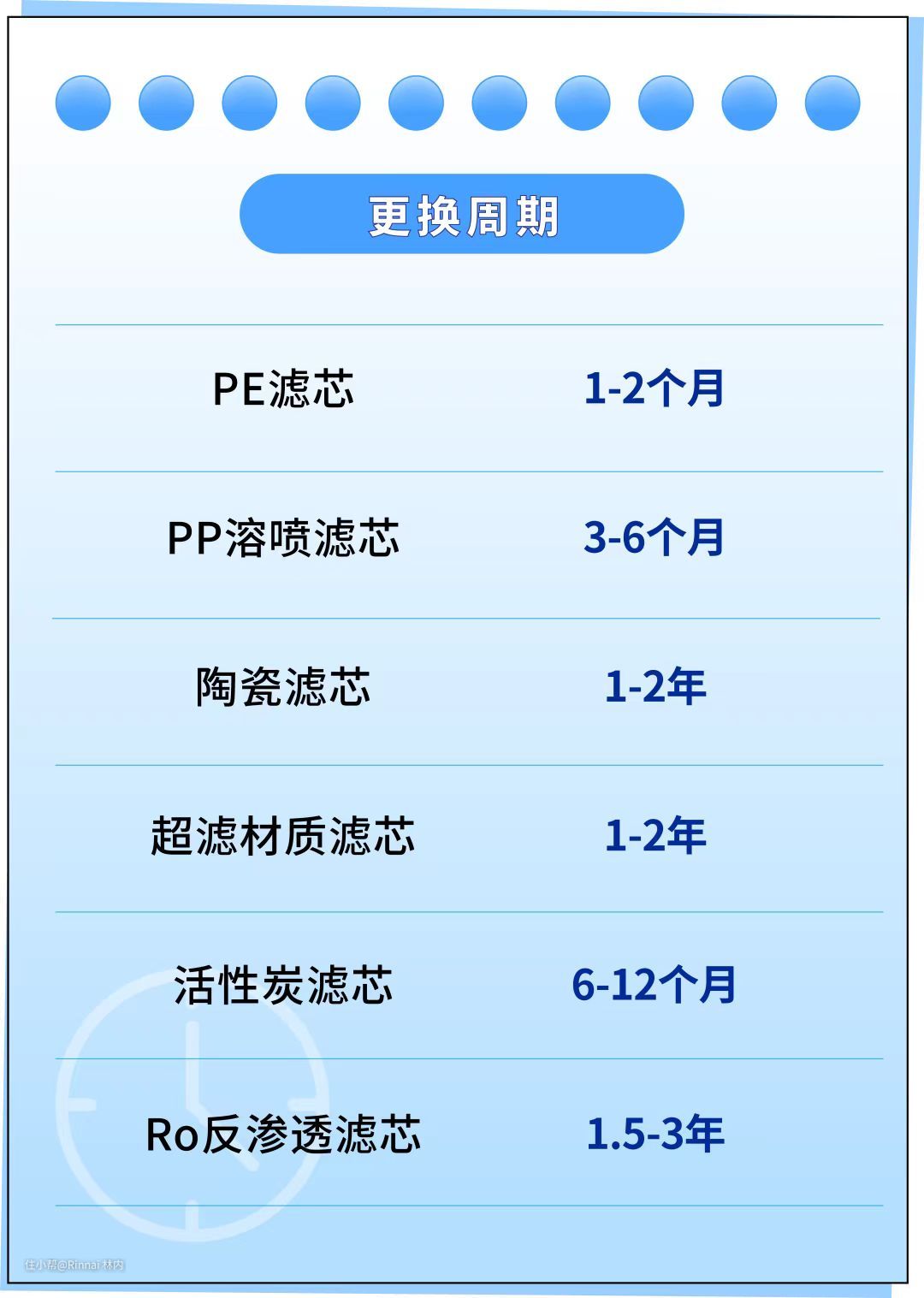 滤芯必须要定期保养更换,不然易造成二次污染,由于材质不同,滤芯的更换周期也不同。