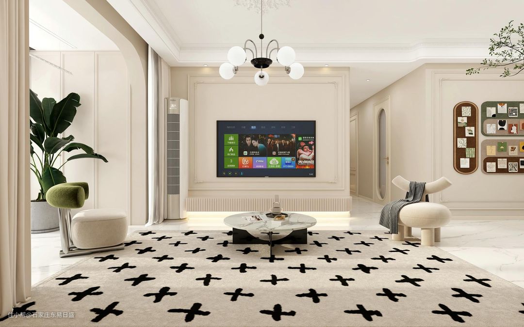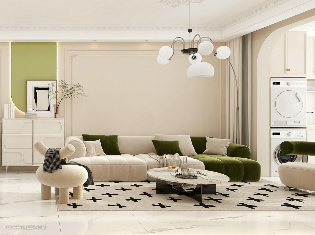 简约浪漫的法式奶油风融合了多种现代元素又不失法式浪漫,精致的吊灯和落地灯,提升空间的高级氛围。珊瑚绒材质的沙发,给人舒适柔软的体验。沙发两边设计自己喜欢的装饰品。