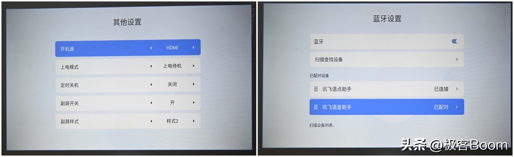 ▲投影的外屏样式可以改变,比如说数字时钟的字体也可以进行设置。另外,也可以显示天气,对我而言这个天气信息有点鸡肋,但时钟倒是真的实用,扫一眼就能知道现在是几点,该洗澡洗澡,该睡觉睡觉。