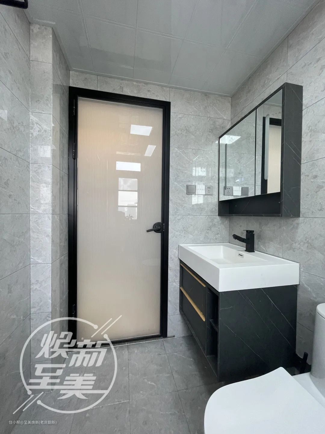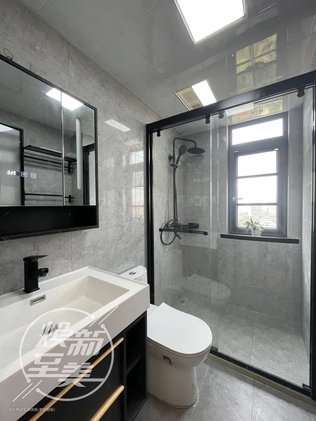 改造后浴室采用钻石型极简美学,塑造现代轻奢风格!干湿分离卫生间,晨间高峰互不干扰,实用及品质并存感受舒居生活有序而从容。