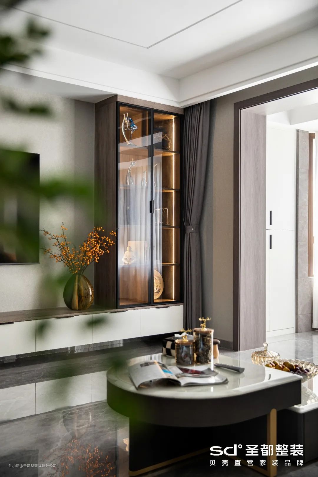如果想要让柜体做展示用,可以选择玻璃柜门,搭配隐形灯带,氛围感更强。