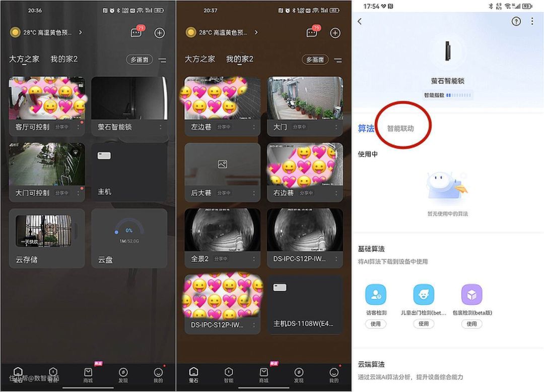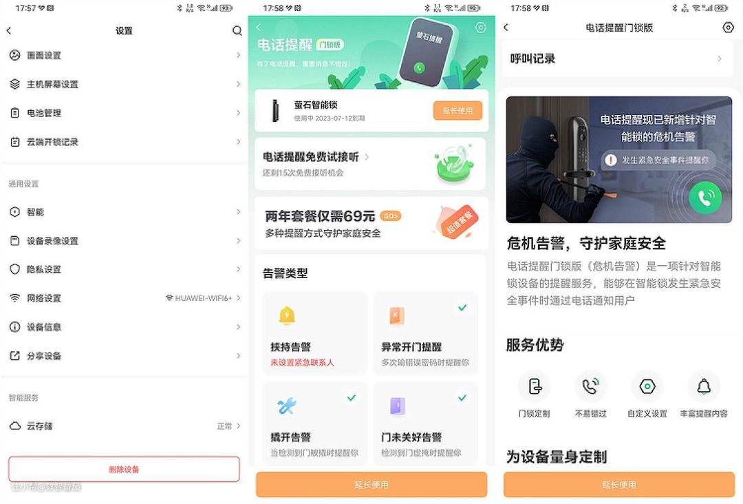 而通过客户端设置菜单,可以看到这款萤石DL50FVS人脸视频锁功能真的非常多,包括多种安全性功能,如访客检测、儿童出门检测、快递包裹检测(这几个功能点均是基于萤石视频与视觉技术的积累实现的,在行业具备创新及领先性)、一键布防、再加上门锁内置的感应检测技术,如门口异常徘徊告警、活体识别等等功能,真的是把安全性打造的相当硬核。并支持24小时防控抓录,将重要画面锁定保存于内置存储(机器内置了8GB自动循环存储空间)和云存储之中,双重存储,保证了重要证据的保存。
