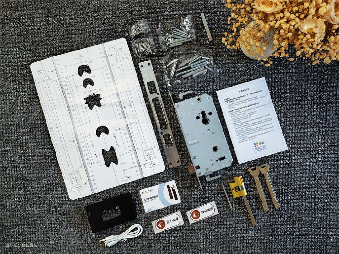 如果稍微有些经验的,也可以像我一样自己安装,享受自己动手的乐趣。萤石DL50FVS人脸视频锁的安装模型是标准的孔位,跟房间门的门锁都是一致的,只需对准原来的孔位安装即可,其中内外锁仅有两条接线,区别很明显对插就行,再换上新锁具/锁芯,再放电池通电、与萤石云视频APP进行配对就搞定了。
