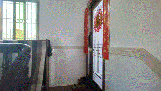 至于镜头画面的宽幅,这跟我楼梯通道的格局有着关系,因为自建房楼梯一则是紧挨着楼层入户门,所以角度比较刁钻,与镜头处于平行状态,故所以拾取不到,并非广角不到位的问题。下图是我未安装时先测试的广角镜头效果,拾入的画面是比标准镜头要宽幅的多,完全能满足商住楼入户门和通道的全景拾取。