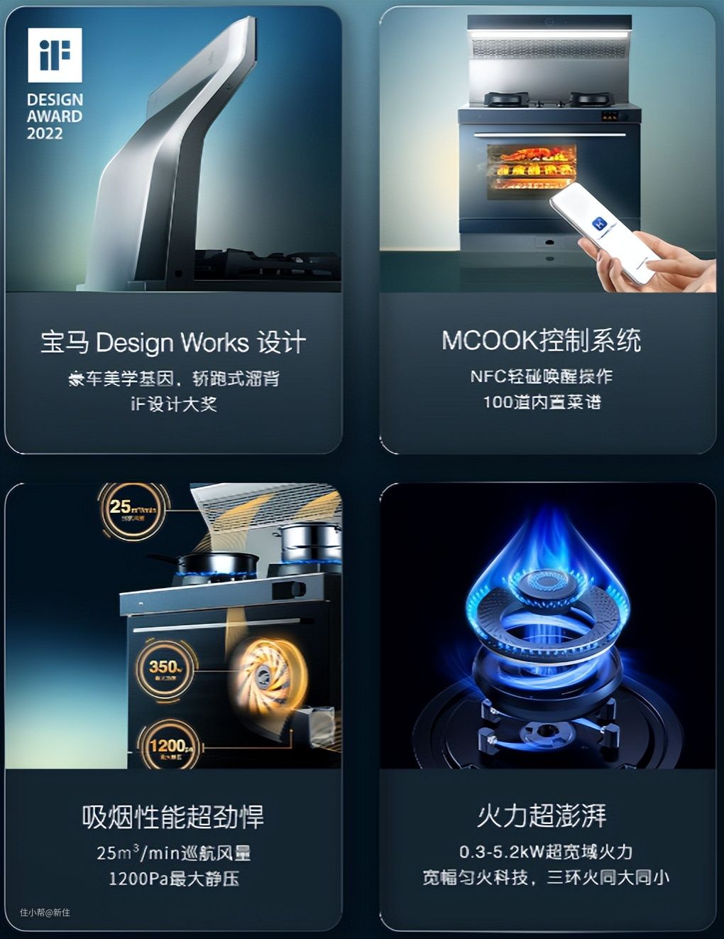 值得一提的是,X8智能集成灶联合宝马集团旗下设计公司Designworks共创设计,高度应用德系轿跑的精益匠造技术,轿跑式溜背经典流线展现流畅线条,将设计美学与高端厨居生活有机融合,辅以灵动的灯带设计和简约配色,呈现出低调奢华的视觉质感。