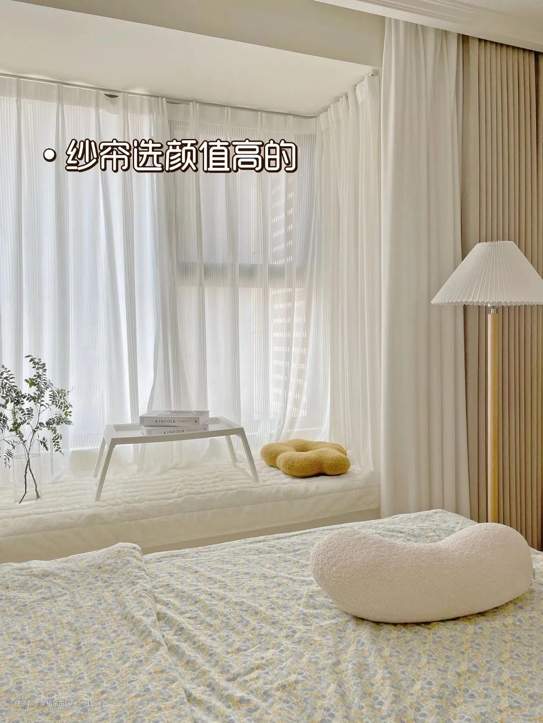 纱帘:纱帘会让房间更通透,可以根据其功能性选择,尽量选颜值高的,避免选择颜色丰富的,容易踩坑。