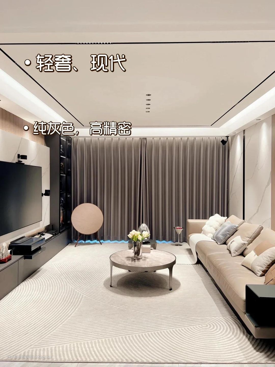 现代风、轻奢风:颜色可以选纯灰色,材质选择高精密的,有光泽,显大气