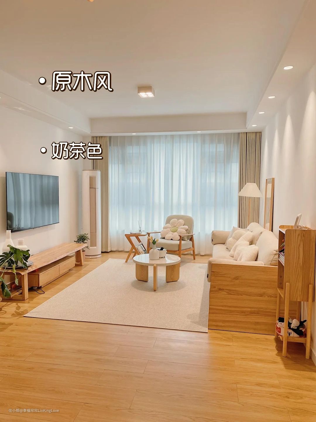原木风、咤寂风:窗帘建议选择和原木色彩贴近的奶茶色,材质可根据空间需求选择,房间选择遮光好的绒布雪尼尔等,客厅可选择透气性好的棉麻类