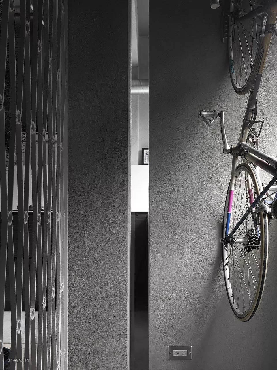 ▲水泥灰色的墙面,用以悬挂自行车,低调档次又耐脏。