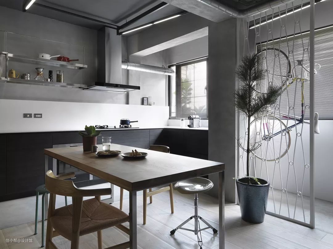 70㎡极简工业风,水泥天花+管道外露,却能装出和谐的高级感