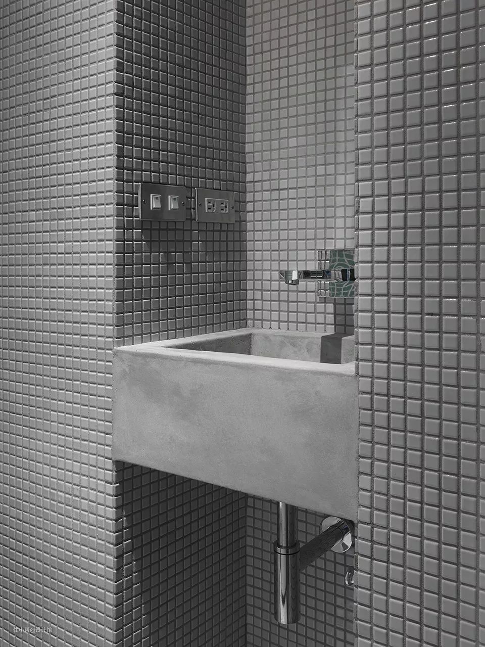 ▲灰色马赛克,让卫浴空间显得低调而独特,极具工业风的气质。