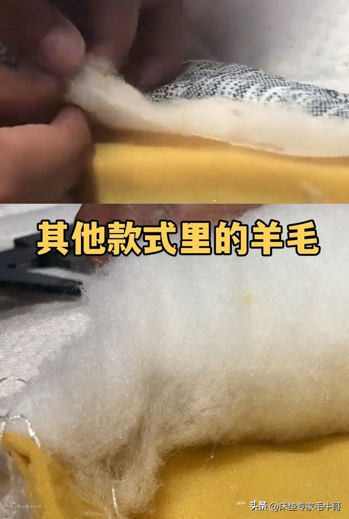 首先绗缝层的羊毛,虽然我没办法拆下来给大家看实拍,但羊毛床垫里肯定是有的,只不过参考别的型号,它的厚度或许会有点水分,所以在提升睡感这一方面上,还得看看羊毛究竟有几斤分量。