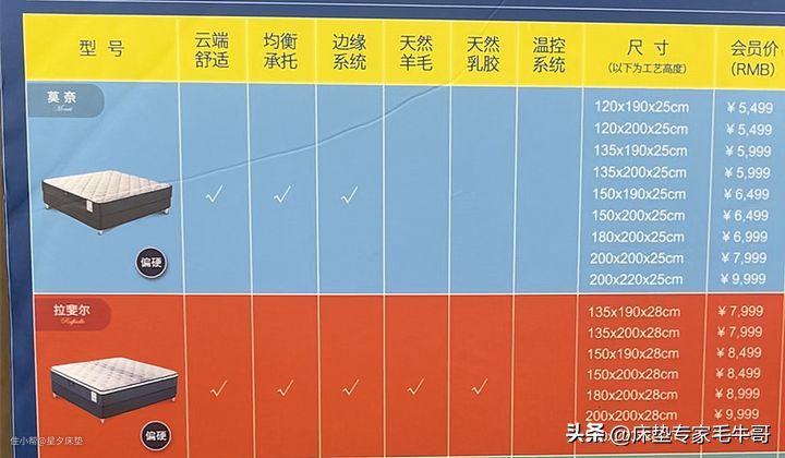 但是我在苏州这边的山姆店里只有莫奈和拉斐尔有样品可以试睡,所以本次测评只有这两款。另外由于每个人对床垫睡感的喜好都有偏差,所以本测评有一定的偏差,希望大家多多包涵。