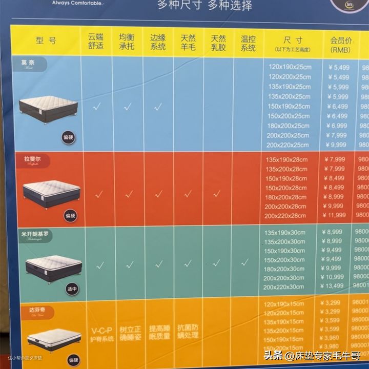 首先说明,舒达在山姆这边售卖共有四种款式的床垫:莫奈、拉斐尔、米开朗基罗、达芬奇。